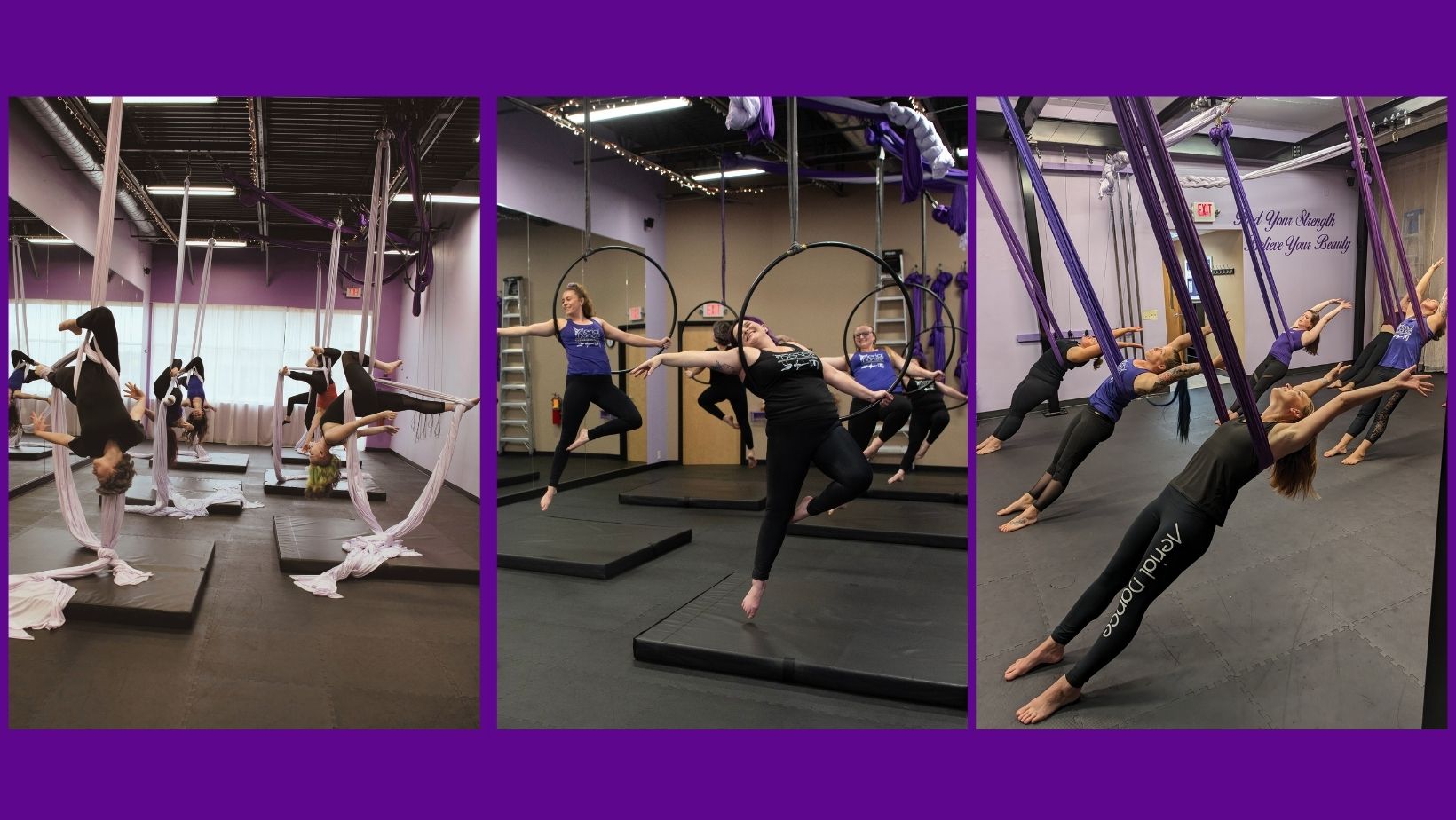 We offer two types of trial classes-- Intro to Pole and Intro to Aerial.