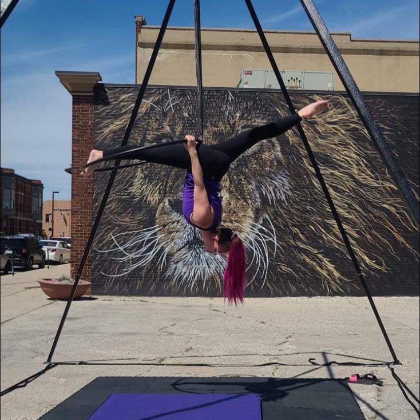 Our general performance opportunities are on our aerial rig using hoop, hammock, and silks. We determine which apparatus(es) will be used based on current weather conditions. Hoop tends to be the most commonly utilized since it can be used regardless of wind conditions. Hammock and silks can only be used if it is not windy - the strands are too hard to keep track of in the wind.